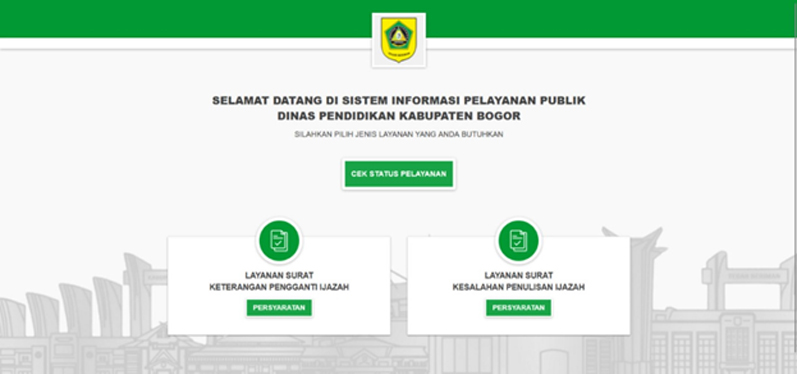 3. Dalam upaya meningkatkan kualitas pelayanan publik, Dinas Pendidikan Kabupaten Bogor terus berinovasi dengan memanfaatkan teknologi informasi. Salah satu wujud konkret dari inovasi tersebut adalah peluncuran PEPES Online (Pelayanan Publik Perbaikan Ijazah Siswa Online). Layanan ini dikembangkan untuk memberikan kemudahan bagi masyarakat, khususnya peserta didik, orang tua, dan satuan pendidikan, dalam mengakses informasi tentang layanan perbaikan ijazah rusak, atau terdapat kesalahan penulisan data tanpa harus datang langsung ke kantor dinas.