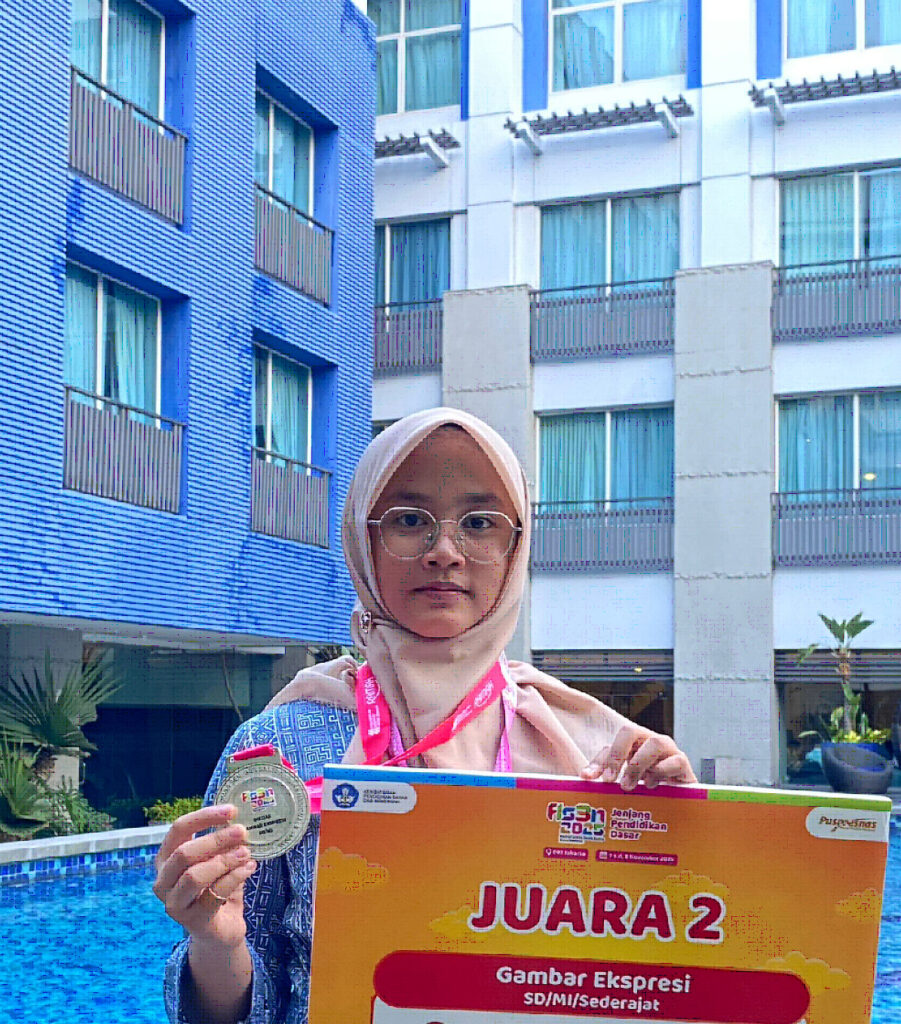 4. Siswi Al-Azhar Syifa Budi Cibinong Meraih Juara 2 Nasional Lomba Menggambar Ekspresi FLS3N 2025 tingkat Nasional jenjang SD/MI.