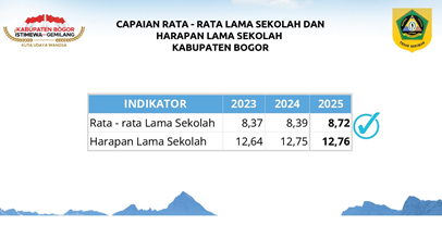 Dalam peningkatan kualitas layanan pendidikan dalam capaian Rata-Rata Lama Sekolah. Pemerintah Kabupaten Bogor melalui Dinas Pendidikan menorehkan prestasi peningkatan capaian yang segnifikan pada tahun 2025. Dimana serangkaian program telah dilaksanakan yang diantaranya ;